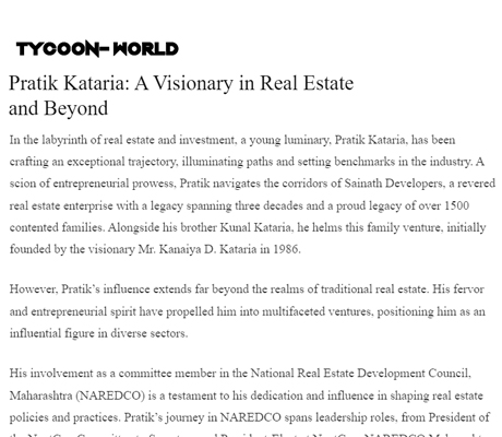 Pratik is a contributor to NAREDCO (National Real Estate & Development Council, under the aegis of Ministry of Housing and Urban Affairs, Govt. of India) Maharashtra NextGen Committee. He served as the Secretary, President-Elect and is currently the President of the NextGen Committee, Naredco Maharashtra.